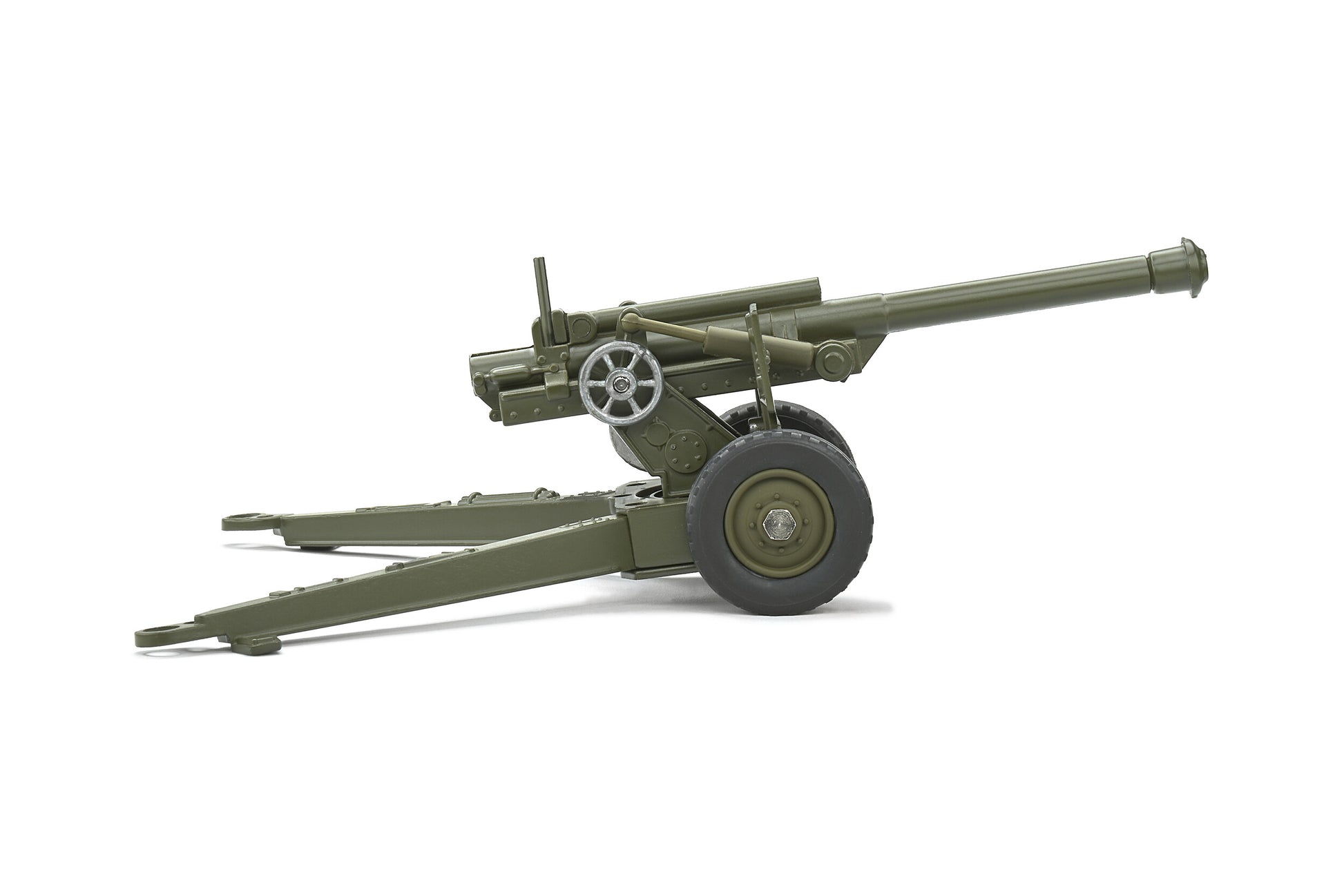 The world-renowned 105mm Howitzer is an American artillery piece developed by Rock Island Arsenal during World War II. This twin-arrow gun with a rate of 15 rounds / min quickly won the military over with its mobility, robustness and ease of use and deployment. Even though it is limited by its range (11.5kms maximum) it was widely used during World War II, the Korean War or the Vietnam War! While its production was stopped in 1953, it is still used by some armies today.