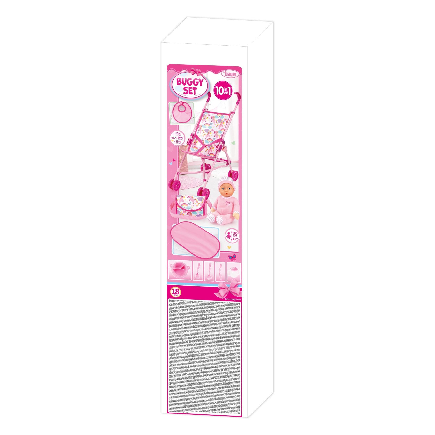 Buggy Dolls Pram Set (Pink/Unicorns) w/30cm Doll Bayer Bay30585AB