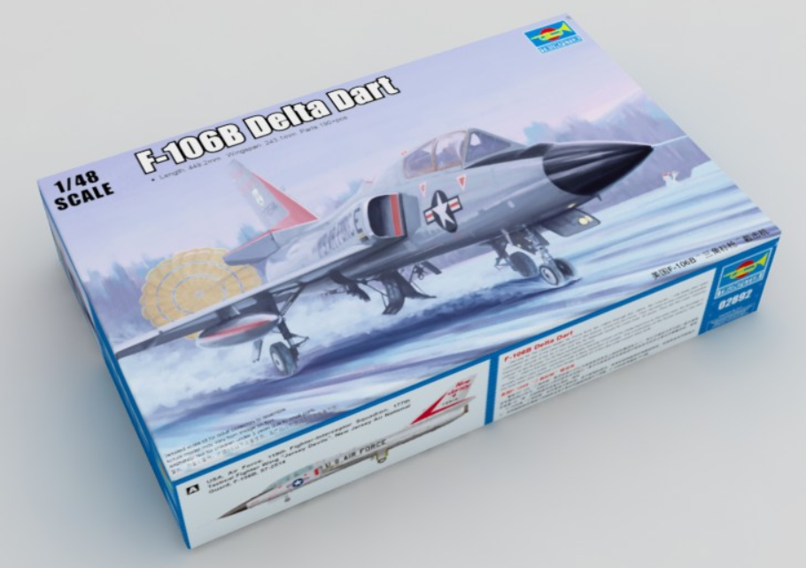 The F-106B is the two-seat combat-capable training version of the Delta Dart.Due to the extra seat, the fuselage is actually better area ruled; combined with a likely reduction in weight.The construction of the former weapon bay and the door were also adjusted for the longer cockpit.63 of this two-seat version were built. Item No 02892 Item Name F-106B Delta Dart Bar Code 9580208028927 Scale 1:48 Item Type Static Kit Model Brief Length: 449.2mm Wingspan:243.1 mm Total Parts 190+