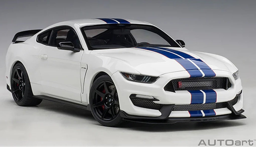 Ford Shelby Gt-350r Oxford White W Lightning Stripes 1/18 Scale Auto Art AA72931