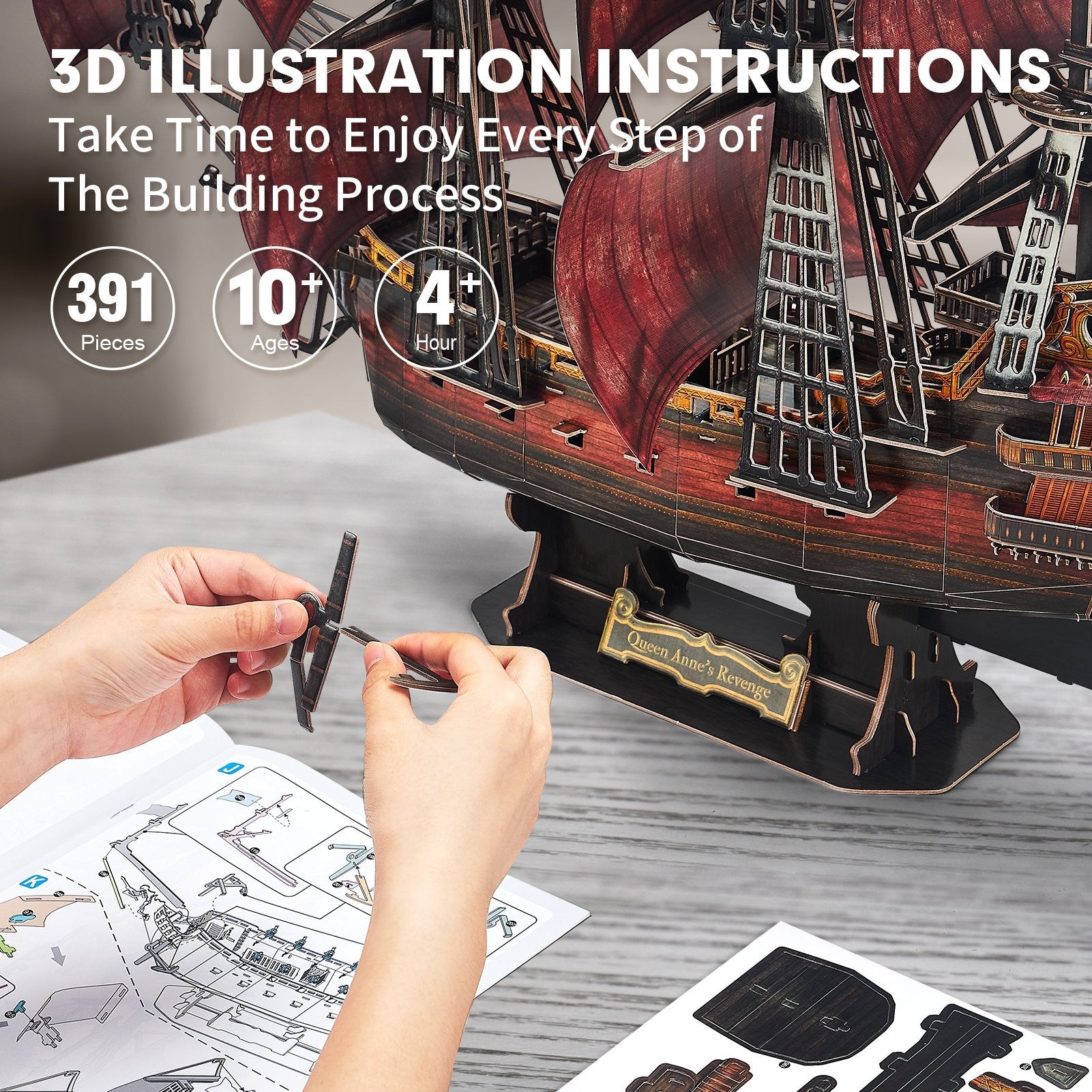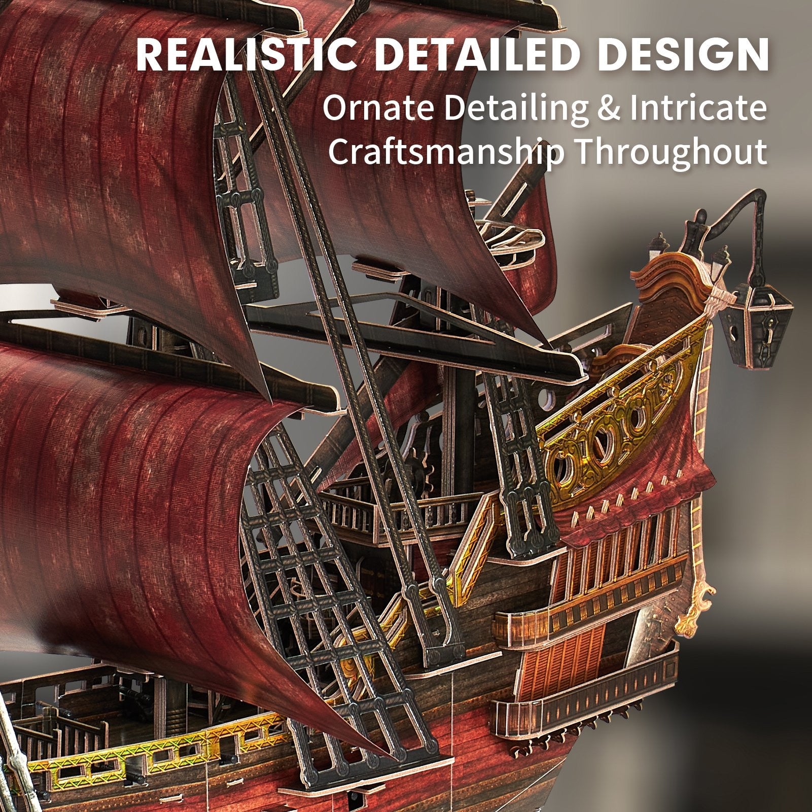 Prepare to set sail on a pirate adventure like no other with CUBICFUN's latest 3D puzzle creation - the Queen Anne's Revenge Red edition!