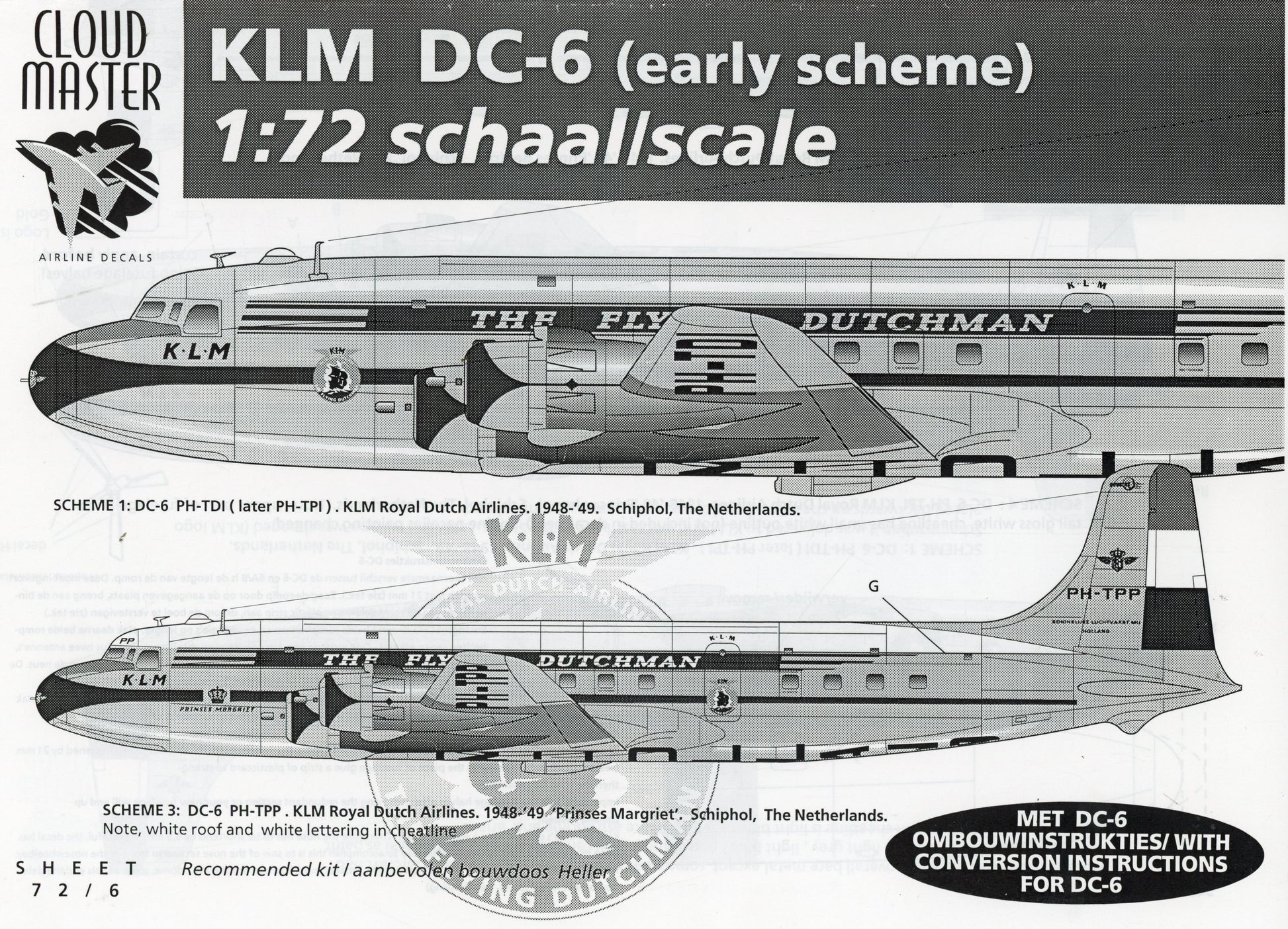 KLM DC-6 (early scheme) Decals - 1/72 Scale Cloud Master 72/6