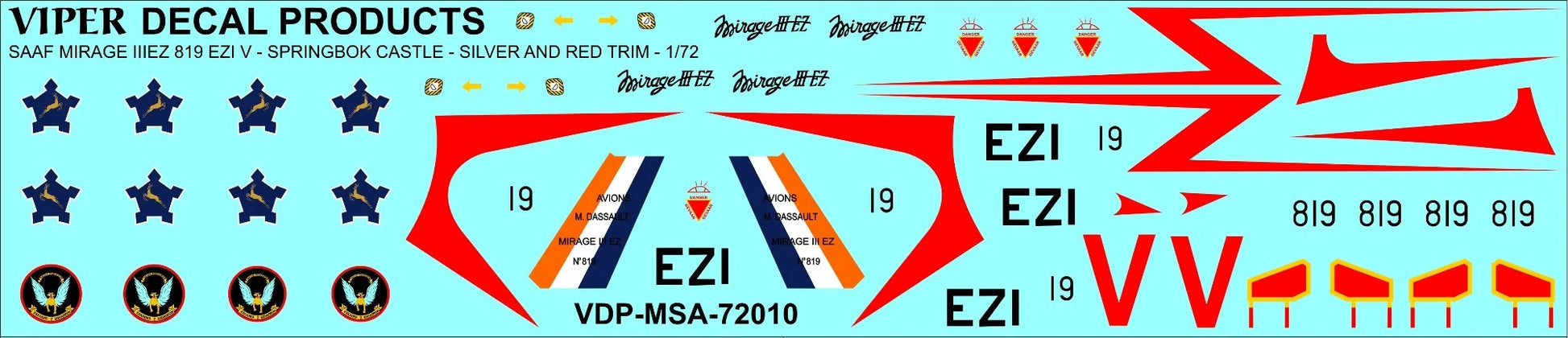 MSA72010 SAAF Mirage IIIEZ 819 EZI V 1/72 Scale Viper Decal Products MSA72010