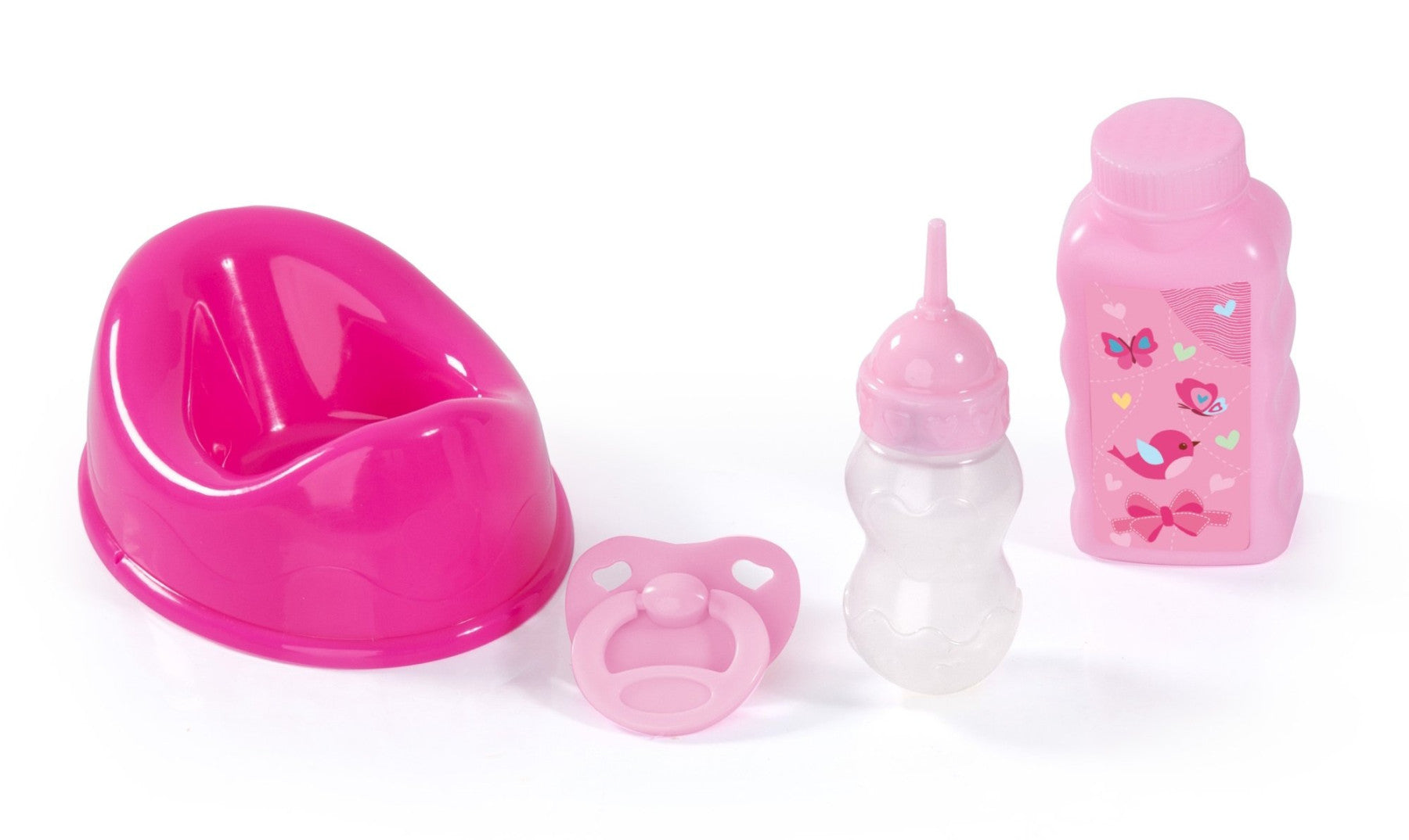 Piccolina Newborn Baby is a cute 30 cm hard body doll with accessories. If you give her the water-filled bottle she immediately has to use her included potty to make pipi! A potty, bottle, baby powder tube and a pacifier are included. Piccolina Newborn Baby wears a cute body with clouds.