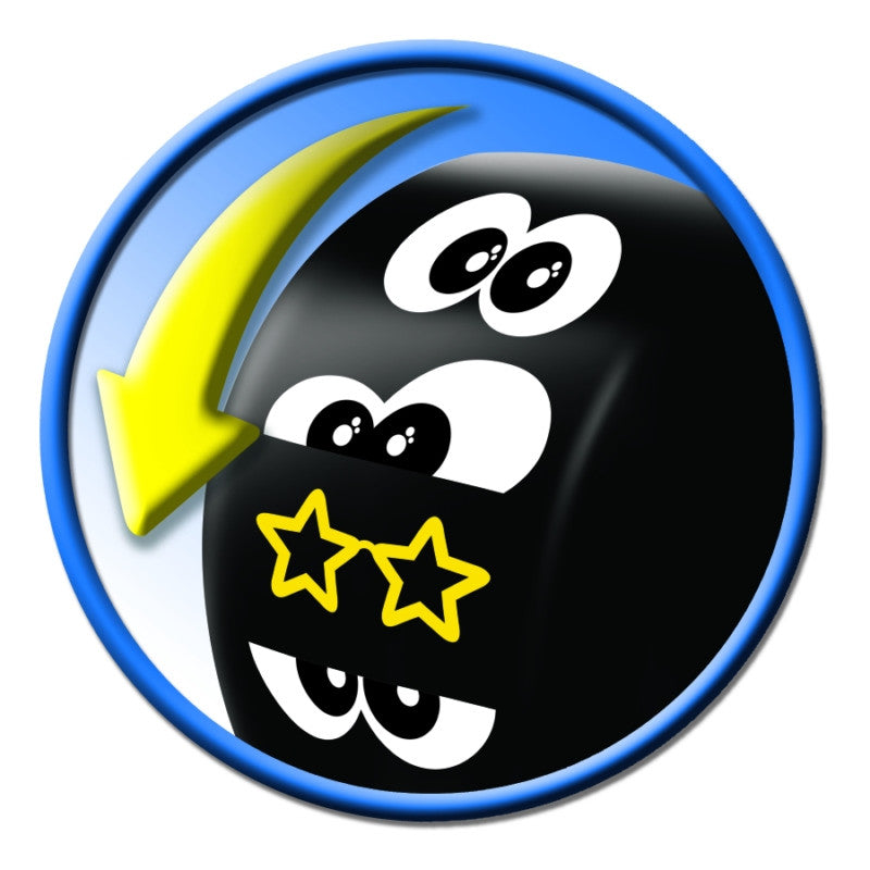 Push down on the surfboard to watch the vehicle roll forward and change expressions.