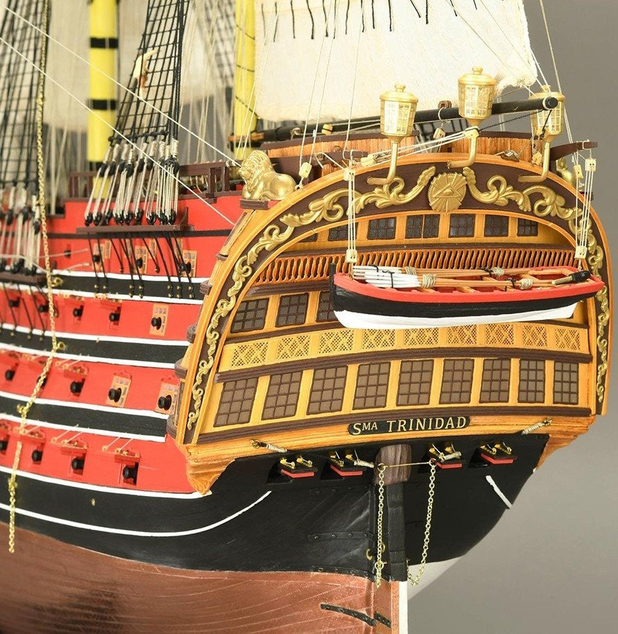 Once it is assembled, the model of Santísima Trinidad (22901), measures 46.88'' (1191 mm) length, 35.63'' (905 mm) height and 18.26'' (464 mm) width. Its design using a false keel and frames brings its assembly closer to the real ship. Achieve the best finishes for your 1:84 scale model by painting it with the Set of Paints Santísima Trinidad (277PACK30), for sale separately.
