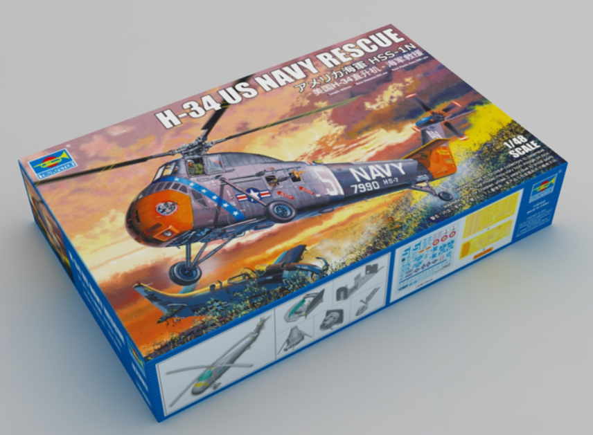 Item No 02882 Item Name H-34 US NAVY RESCUE Bar Code 9580208028828 Scale 1:48 Item Type Plastic Model Aircraft Kit Paint Schemes HSS-1N US Navy Rescue Model Brief Length:404 mm Rotor Diameter:333 mm Total Parts 320+