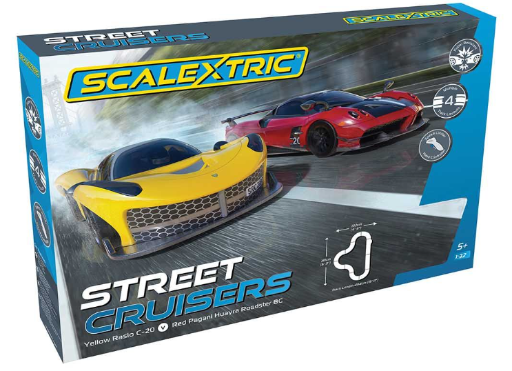 Are you ready to take on the ultimate driving experience- the Scalextric way? If so, bring home the Scalextric Street Cruisers Race Set today. Featuring: 1 x yellow Rasio C-20, 1 x Red Pagani Huayra Roadster BC, track, 2 x controllers, EU 2 pin power supply and accessories, now's your chance to take your racing career to the next level!