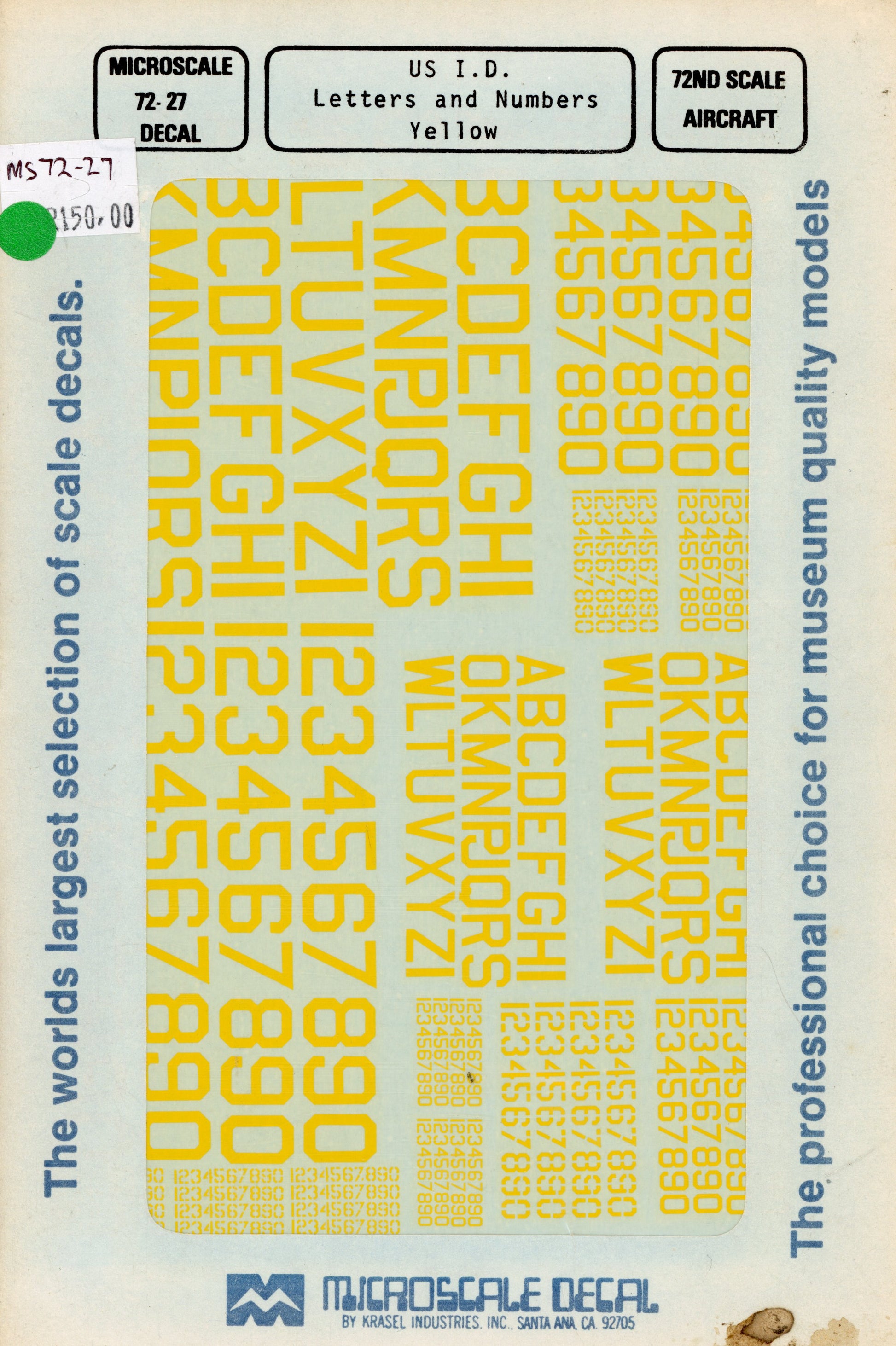 US I.D. Letters and Numbers Yellow- 1/72 Scale Microscale Decal MS72-27