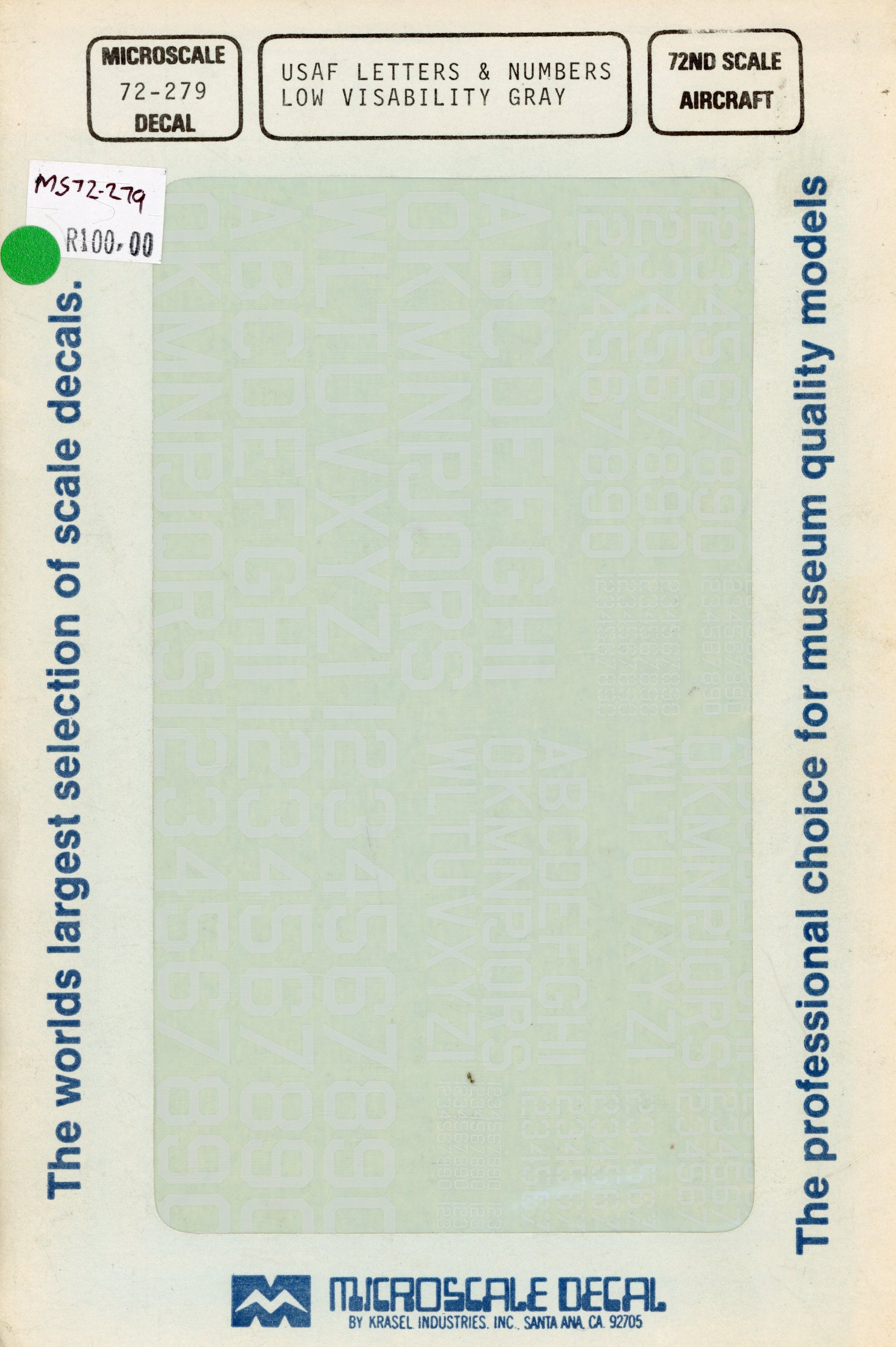 USAF Letters & Numbers Low Visibility Gray - 1/72 Scale Microscale Decal MS72-279