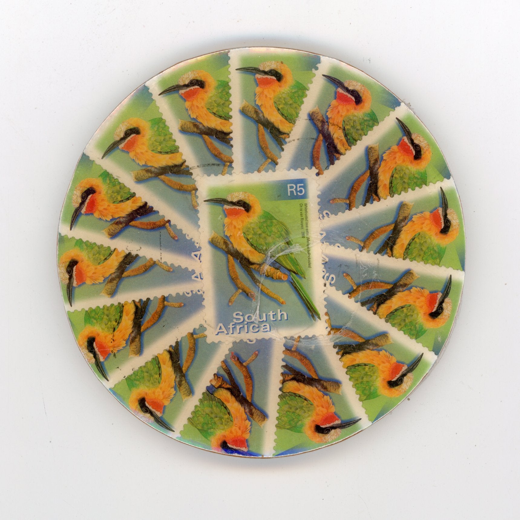 Depicting a South African R5 stamp.
